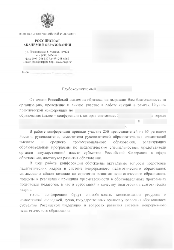Российская академия образования в лице заместителя президента выразила благодарность советнику ректора СНИЦ за организацию и проведение научно-практической конференции.