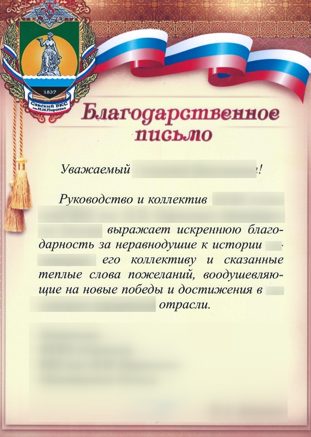 Руководство и коллектив выражает искреннюю благодарность за неравнодушие к истории организации, ее коллективу и сказанные теплые слова, воодушевляющие на новые победы и достижения в отрасли.